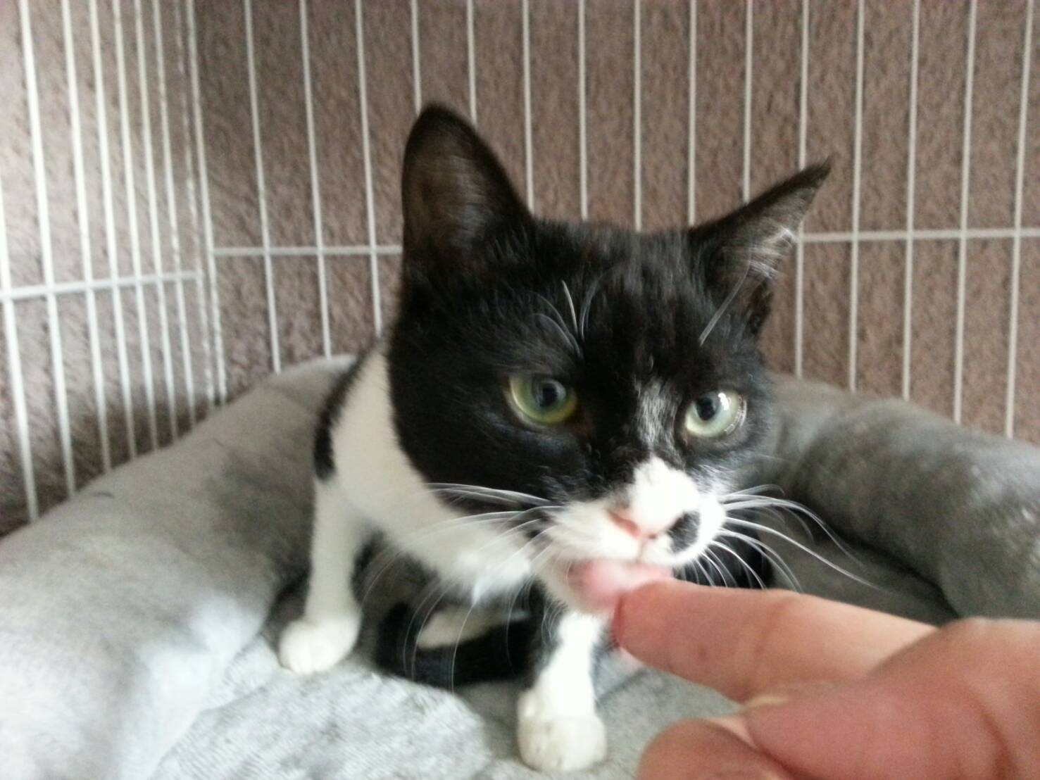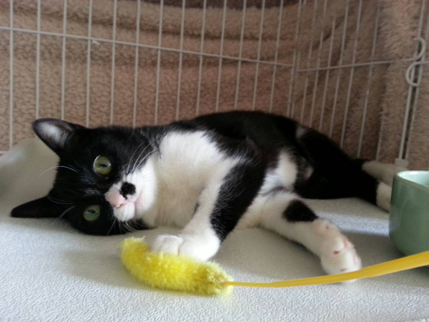 こんにちは☀ 看護師 北野です🙋   我が家の保護ネコ京ちゃん、だいぶ成長しました! 家に来た初日は全く動かず、(ごはんはモリモリ食べていましたが('Д'))     ☝こんなにも不安そうな顔をしていたのですが、 今は・・・     ☝ひっくり返って遊んでくれるように・・・°˖✧◝(⁰▿⁰)◜✧˖°感激! 遊び始めるとこんな感じですが、 京ちゃんを隔離している部屋に入ると高確率で『シャーーー!!!』と言われます(-ω-) 不思議な子です・・・(笑)     ☝ちゅ~るも手から食べてくれます💛     ☝どういう状況?(笑)   距離はだいぶ近づきましたが、どさくさに紛れて触ると 強烈なネコパンチが( ;∀;) 爪伸びてるから痛い・・・( ;∀;)   こんな感じでマイペースに過ごしております!   続く・・・🐱