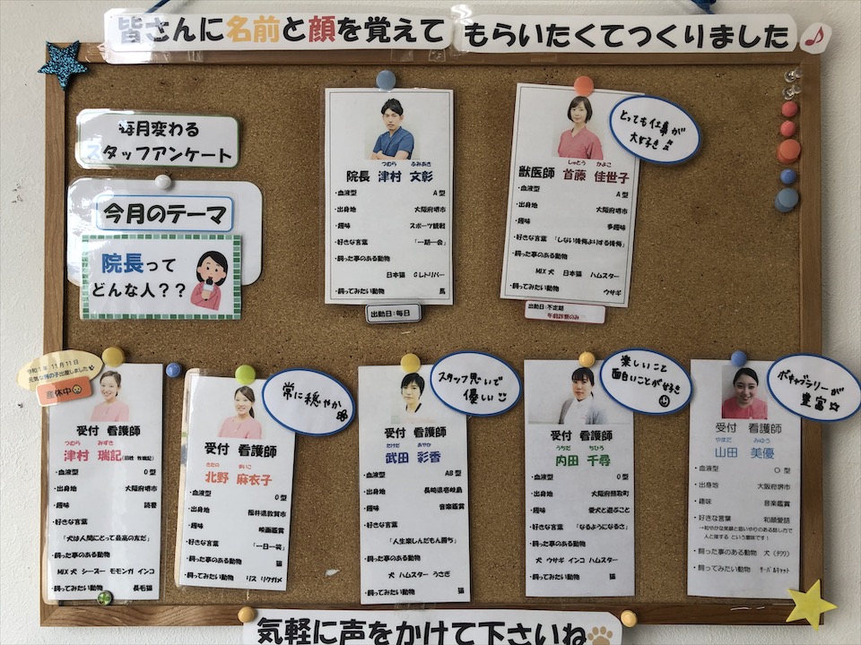 こんばんは!看護師内田です🌙   待合室に飾ってあります今月のテーマですが、 5月6月は「院長ってどんな人🤔?」です✨   ⇧スタッフからの院長はこんな感じです♫   私は面白いこと、楽しいことが好き と書いたのですが この間、院長と話していた時にミルクボーイのネタで大盛り上がりしました!(笑)   内田{これ○○じゃないですか? 院長{でも○○って言ってたんやけどな~ 内田{じゃあ違いますね~じゃあ○○ですかね!? 院長{ほんまやな!でもなんかちょっと違うねんな~   みたいな感じでミルクボーイ風に延々と繰り返していました(笑) 院長のおかげでいっときスタッフ間でのミルクボーイブームが起きていました😉