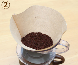 ②それをドリッパーにセットして、中に挽いた粉を入れます。