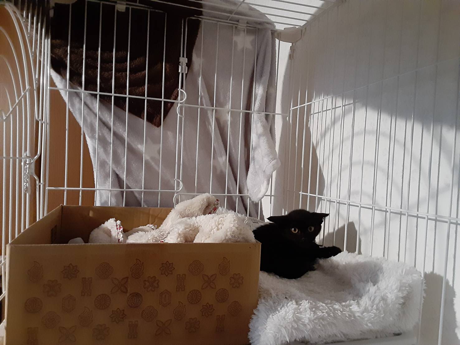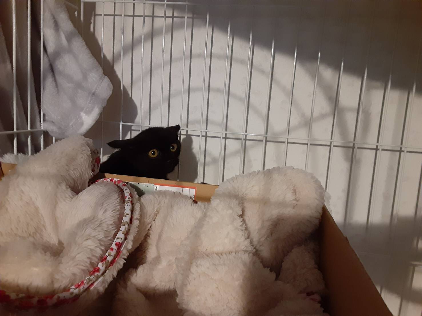 こんにちは☀ 看護師 北野です🙋   去年の12月ごろに、自宅の敷地内で仔猫を保護していたのですが 当院の患者さんでもある南区地域猫の会のHさんに沢山サポートしていただき、 その子が先日里親さんの所へトライアルに行きました🐱💕     その子には『千ちゃん』と仮の名前を付けていて、 保護した当初の千ちゃんはそれはそれは恐がりで💦     見て下さいこの表情!笑 もう私たちの顔を見るだけで「う゛~~」と唸って猫パンチ炸裂でした💦   それでもめげずに接していたら(ほぼ母が)、 約1ヶ月後には顔を見るだけでゴロゴロいうくらい可愛い子に✨     触れるようになったので、避妊手術とワクチンへ💨 病院でもお利口さんでした👏   そんなこんなで、とても素敵なご夫婦から里親希望のご連絡があり今に至ります🌼 里親さんが千ちゃんお迎え体制をばっちりしてくれているおかげもあり、 トライアル中の千ちゃんはびびりながらも 頑張って徐々に慣れていってくれているみたいです! このまま無事に北野家卒業かな~🌸   里親さん募集中でも、おうちにいると家族同然なのでとても寂しいですが、 新しいご家族と幸せな "にゃん生" を歩めますようにと願うばかりです💚🐱