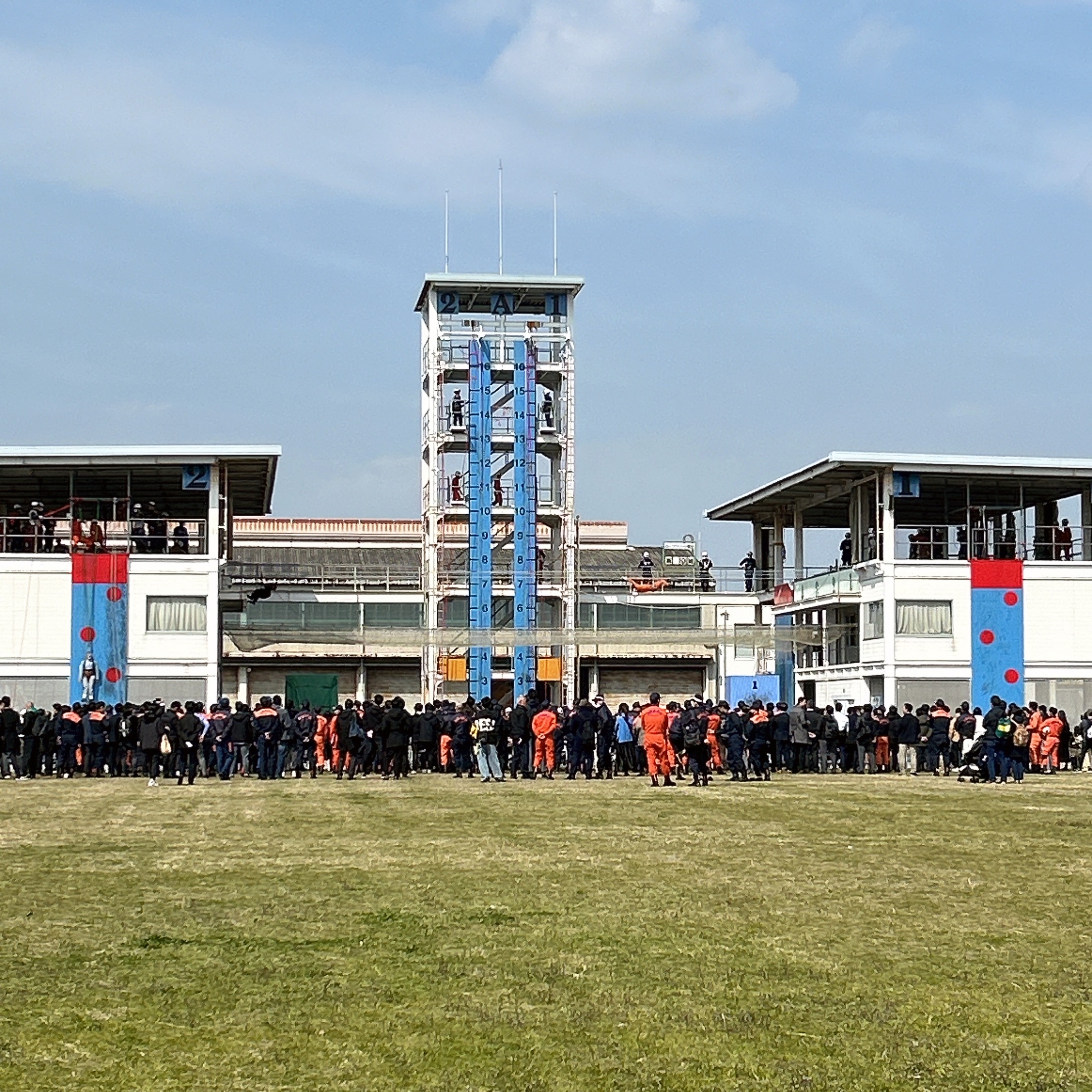 色んな種目があり、チロリアン(綱渡り)、障害突破、建物救助、引揚救助、などなど…